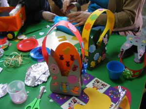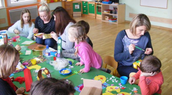 techniczno-plastyczne na temat pojazdów – tych małych i dużych oraz zdobienia koszyków wielkanocnych. Wszyscy rodzice wraz z dziećmi ochoczo zabrali się do pracy. Pomysłów na skonstruowanie pojazdów było co nie miara. Z kartonów i butelek powstały kolorowe auta, samolot i rakiety. Koszyczki wielkanocne również pięknie się prezentują. Ozdobione zostały kwiatami, pisankami, trawką i kurczaczkami. Dziękujemy dzieciom i rodzicom za przybycie oraz zaangażowanie we wspólną pracę. Zapraszamy do Albumu.