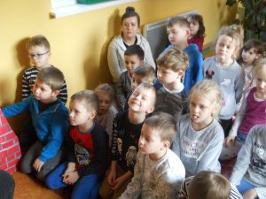 Wandy Chotomskiej, której twórczość poznajemy od września:-) Tym razem wysłuchaliśmy zabawnych „Przygód jeża spod miasta Zgierza”. Dowiedzieliśmy się także po przeczytaniu wiersza, skąd się biorą „Dziurki w serze”. A na koniec były nasze ulubione opowiastki o przygodach kotka Czupurka, Puszka i Łatki. Dziękujemy Pani Justynie za przybycie i poświęcony czas. Zapraszamy do Albumu.