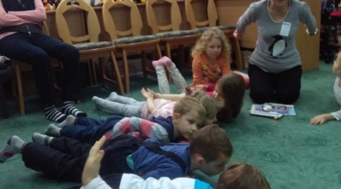Zastanawialiśmy się, do czego służą pingwinowi ogon i płetwy, a także dlaczego nie marznie on w lodowatej wodzie i co to jest efekt cieplarniany. Na zakończenie pobawiliśmy się w rodzinę pingwinków. Po przyjściu do przedszkolak postanowiliśmy pobawić się w łowiących pingwinów. Zabawy była znakomita :-). Na zakończenie naszego dnia odtańczyliśmy stary dobrze znany pląs „O, jak przyjemnie i jak wesoło pingwinkiem być” 🙂 Zapraszamy do Albumu.