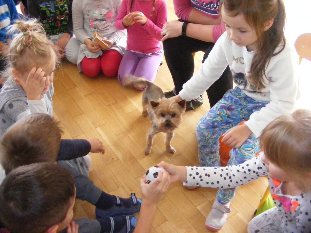 Sówki odwiedziła mama Zuzi. Pani Amelia nie była sama, przyszła razem ze swoim pieskiem – Bamberkisem, który bardzo lubi dzieci. Piesek pokazał przedszkolakom ulubioną zabawę z piłką oraz różne sztuczki. Zaprezentował się również w różnych ubraniach🙂 Dowiedzieliśmy się także wielu ciekawostek o pupilu Zuzi w tym tego, jak należy dbać o pieska. To było super spotkanie. Zapraszamy najbliższych naszych przedszkolaków do odwiedzania naszej grupy 🙂 Zapraszamy do Albumu.
