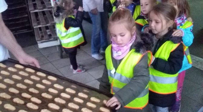 dzieci obejrzały piekarnię, poznały różne urządzenia w niej wykorzystywane, a także miały okazję z bliska przyjrzeć się pracy piekarza. Na zakończenie pobytu każdy przedszkolak otrzymał świeżutkie ciasteczko 🙂