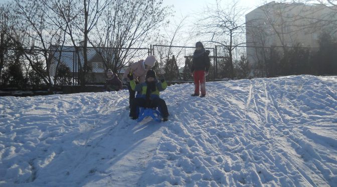 W środę 7 lutego grupa „Sówek” wybrała się do ogrodu przedszkolnego, by skorzystać z zimowych atrakcji. Każdy z nas ciepło ubrany, wyposażony w sanki, jabłuszka do zjeżdżania i dobre humory cieszył się z pobytu na świeżym powietrzu. Zjeżdżaliśmy „z górki na pazurki”, rzucaliśmy się śnieżkami, turlaliśmy się i robiliśmy aniołki na śniegu. Wywiązała się także bitwa na śnieżki między Panią Justyną a dziećmi 🙂 Oczywiście zwyciężyły dzieci. W świetnych nastrojach po udanej zabawie wróciliśmy na ciepły obiadek do przedszkola. To był super dzień! Zapraszamy do Albumu.
