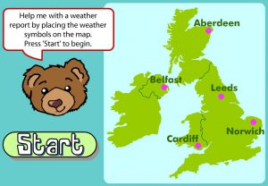 What’s the weather like today? Jaka dziś pogoda? Kangurki potrafią już odpowiedzieć na to pytanie po angielsku.  It’s snowy. It’s windy. It’s sunny. It’s stormy. It’s rainy. It’s cloudy. Przedszkolaki mogą już pełnić rolę pogodynki:) W nowej grze online, przedszkolaki słuchały i dopasowywały symbole pogody do miast w Wielkiej Brytanii.
