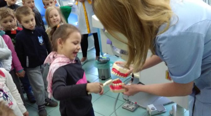 W związku z realizacją zdrowego tygodnia postanowiliśmy wybrać się do Gabinetu Dentystycznego. Podczas wizyty przedszkolaki miały okazję dokładnie poznać charakterystykę pracy stomatologa. Wszyscy z zaciekawieniem obejrzeli gabinet, znajdujące się w nim narzędzia oraz pozostałe elementy wyposażenia.