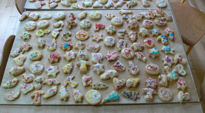 Tygryski rozpoczęły przygotowania do świąt. W piątek zaczęliśmy wyrabiać ciasto na ciasteczka. Wszyscy z zapałem wyciskali z foremek choinki, grzybki, bałwanki, serduszka i gwiazdki. Każdy bardzo się starał, aby zrobić jak najwięcej figurek 😉 W poniedziałek był czas na dekorowanie ciastek. Smarowaliśmy je lukrem, sypaliśmy kolorową posypką i malowaliśmy śmieszne minki żelowymi pisakami z lukru. Zapakowaliśmy ciasteczka i jako prezent świąteczny wręczymy naszym rodzicom, ale ciiii, bo to tajemnica 😉 Zapraszamy do Albumu.