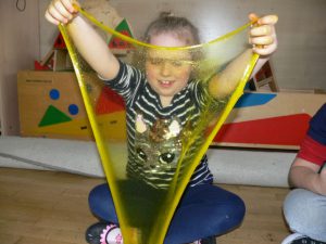 Dziś w Kangurkach działo się! Dzieci odwiedziła Maja i poprowadziła profesjonalne warsztaty sensoplastyczne z robienia „slimów”, czyli po prostu glutków. Każde dziecko miało okazję stworzyć własnego,kolorowego slima. Zabawa taką plastyczną substancją stanowi świetne ćwiczenia dla przedszkolaków. Sensoplastyka to takie sensoryczne podejście do plastyki. Połączenie doznań dotykowych ze wzrokowymi (mocne kolory), zapachowymi, słuchowymi. Trochę niestety wszyscy się pobrudziliśmy, ale zabawa była najlepsza na świecie! Zapraszamy do Albumu.