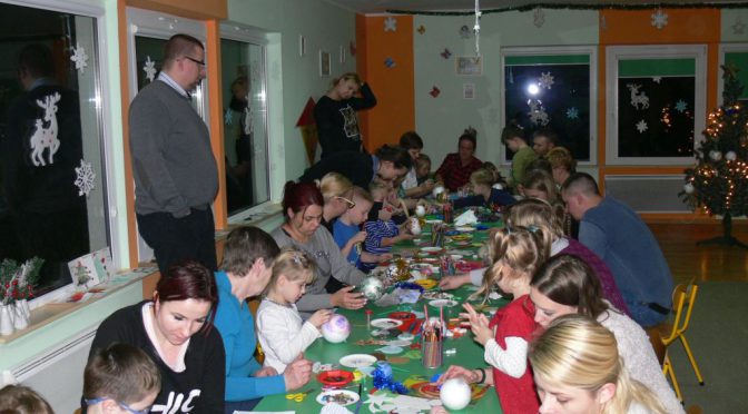 W czwartek 15 grudnia nasza sala zamieniła się na moment w pracownię plastyczną, w której działo się wiele ciekawych rzeczy. W miłej, świątecznej atmosferze wielu rodziców naszych przedszkolaków odkrywało swoje talenty plastyczne, a dzieci zamieniły się w prawdziwych artystów. Każde dziecko mogło zadecydować samo, w jaki sposób ma wyglądać wykonywana bombka lub inna ozdoba. Powstało bardzo dużo pięknych i niepowtarzalnych dekoracji świątecznych. Dzieci wraz z rodzicami mogły również z Miss Magdą wykonać lampiony świąteczne. Serdecznie dziękujemy wszystkim, którzy wzięli udział w warsztatach. Zapraszamy do Albumu.